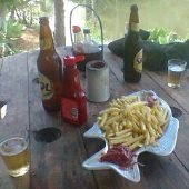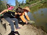 Emprestamos varas de bambu e fornecemos iscas por R$ 0,50 un.